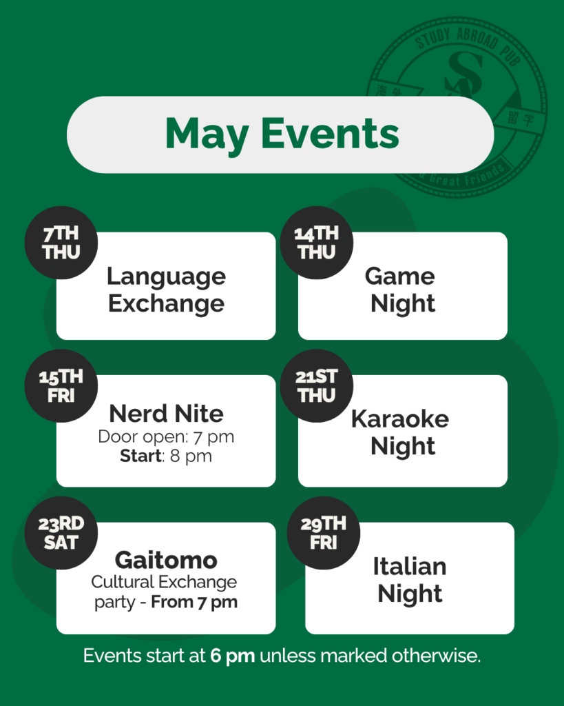 Open every from Thursday to Saturday from 6pm - 10:30pm. Come to meet new people, make friend, or practice your language skills!
